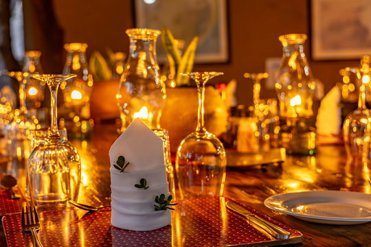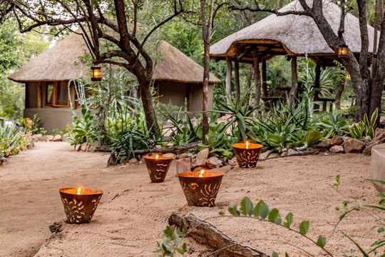 In the evening you will be treated to pre dinner drinks in the traditional boma around the fire, followed by one of Umlani's award winning meals in the candlelit dining room, or out in the open riverbed surrounded by flares and cauldron fires.